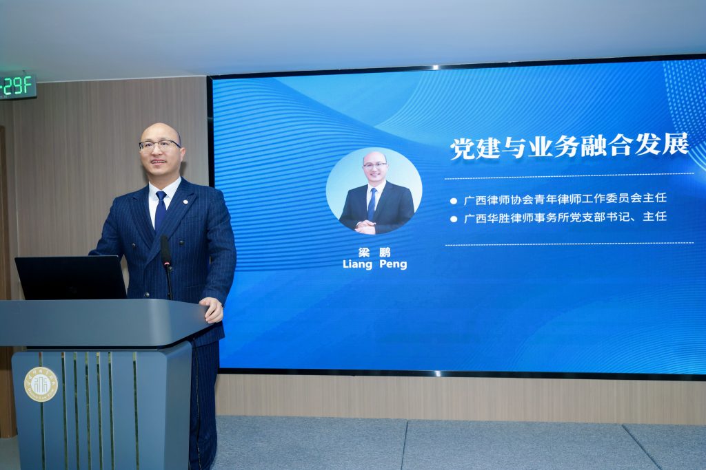 广西华胜律师事务所主任梁鹏以《党建引领律师事务所高质量发展》为题,系统阐释了党建与业务从“相加”到“相融”的路径。他介绍了“华胜红”党建品牌通过“组织同步建设、品牌活动同步开展、考核激励同步挂钩”的“三个同步”工作法,推动党建切实成为律所发展的“红色引擎”,实现专业能力、品牌影响与团队凝聚力的全面提升。