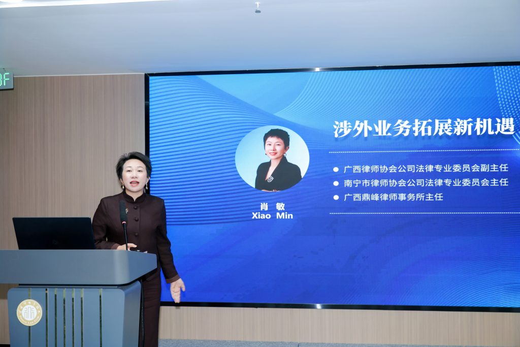 广西鼎峰律师事务所主任肖敏以《涉外业务拓展新机遇》为题,深入剖析了广西面向东盟的涉外法律服务机遇与挑战。她结合“富力创始人张力案”“比亚迪越南工厂罢工案”等典型案例,强调了跨境投资中合规经营与文化适应的重要性,并分享了鼎峰所通过出版实务丛书、设立海外分支机构、开展常态化学术交流等方式布局东盟市场的实践经验。