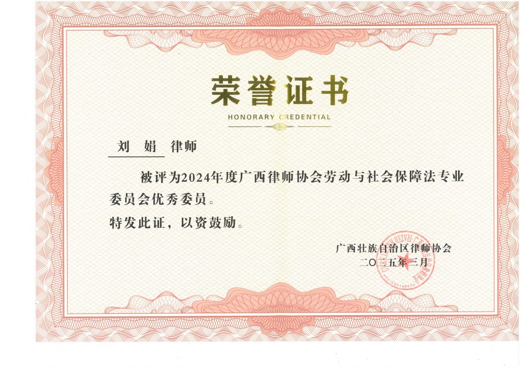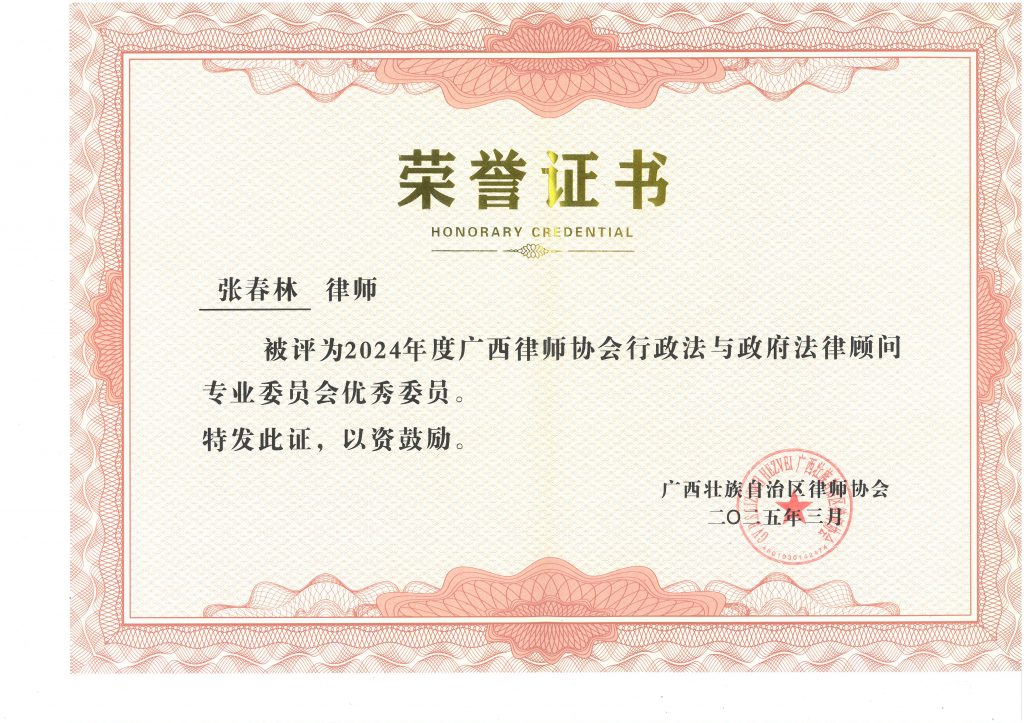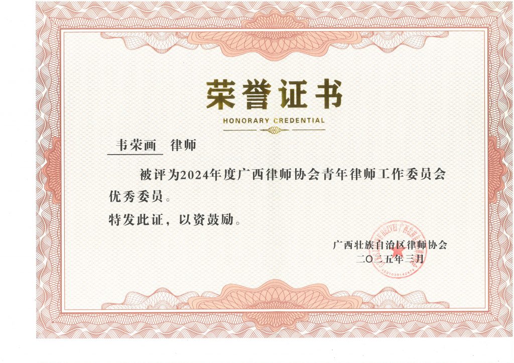 韦荣画、张春林、刘娟三位律师获评广西壮族自治区律师协会专门专业委员会“优秀委员”称号。