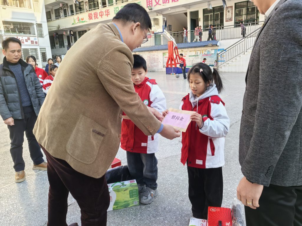 1月13日,原党支部书记韦荣画、党员律师陈新敏、走进大化瑶族自治县雅龙中心小学,为贫困优秀学生送去关怀与帮助。